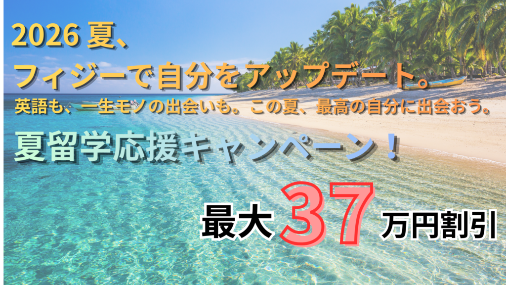 2026年夏留学応援キャンペーン フィジー留学費用最大37万円割引