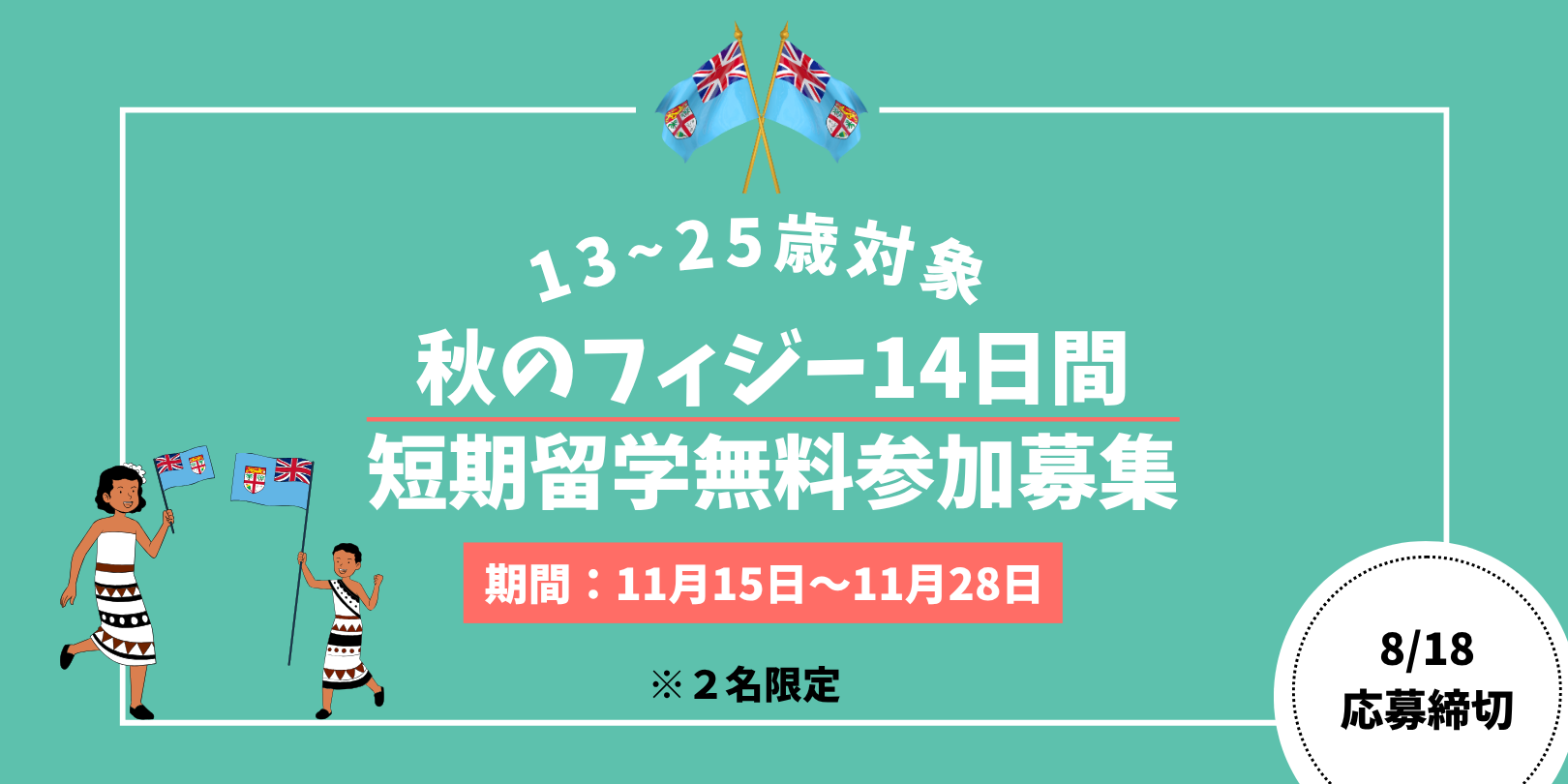 2025年10月16日2025年10月16日ニュース【フィジーまでの直行便セール開始!11月5日まで】成田ーフィジー直行便セール!往復最安値6万5千円+諸税で購入可能! 2025年12月〜2026年春、夏の留学をご […]